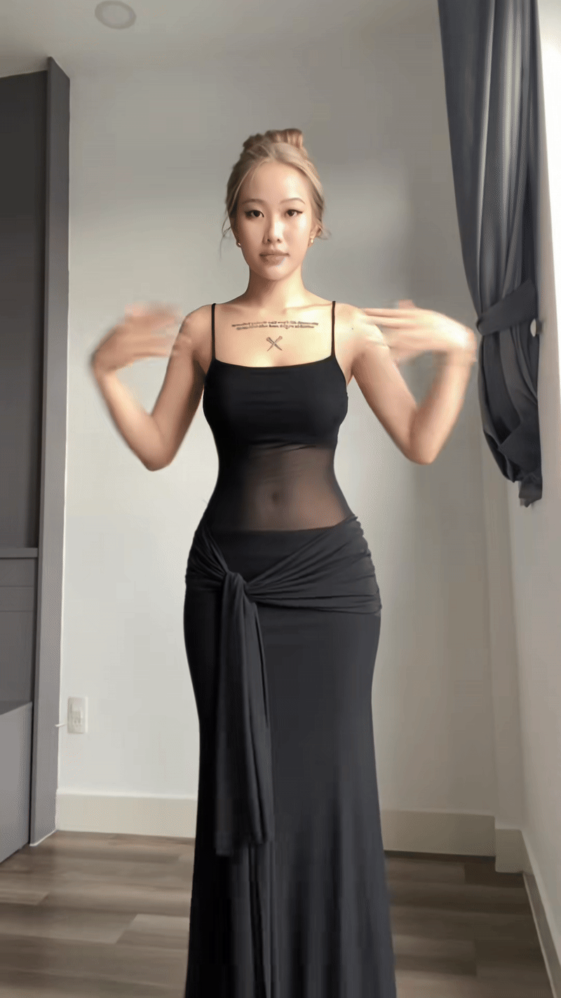 ✨ This dress features a sheer mesh belly panel for a subtle, alluring touch. The flattering waistline enhances your silhouette, and the lightweight, breathable fabric keeps you feeling effortlessly radiant.